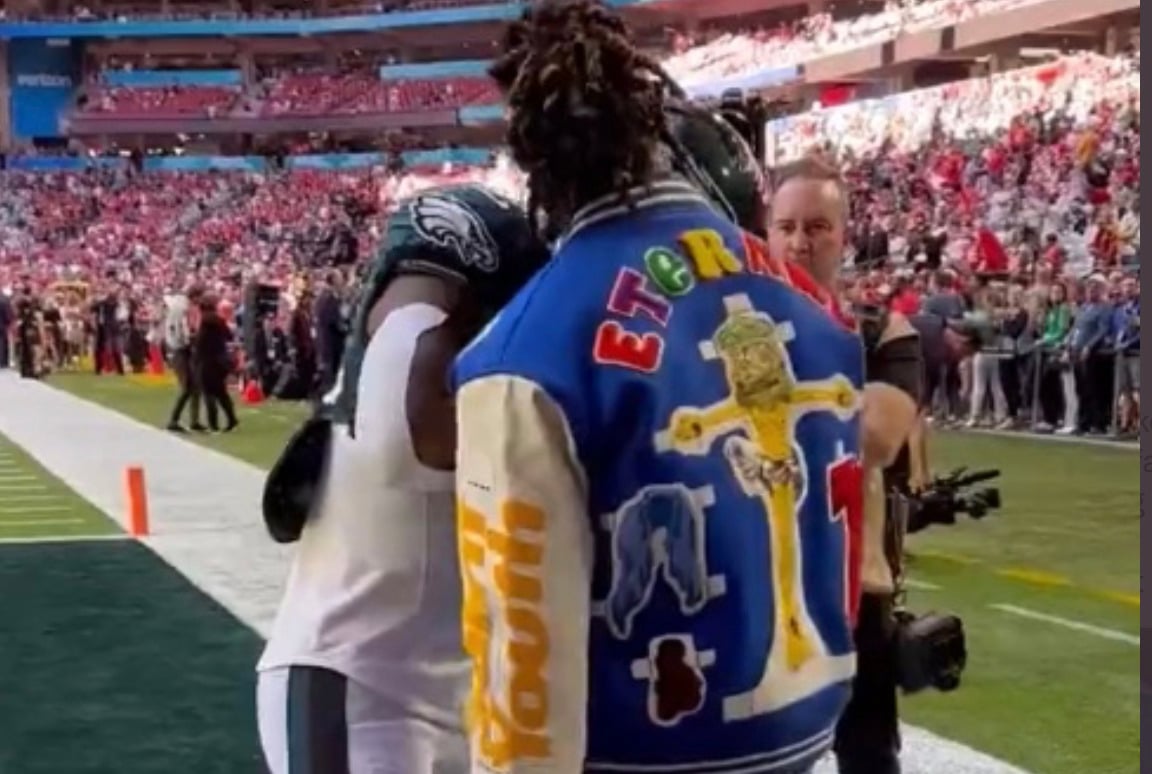 Adrian Peterson Responds to Damar Hamlin’s “Blasphemy” Jacket Seen at Super Bowl