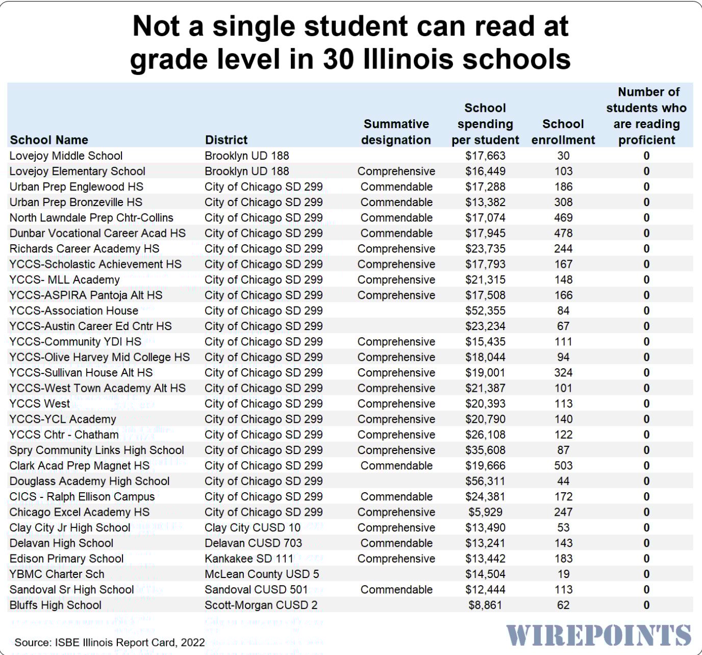 In 30 schools in Illinois, not a single student can read at grade level, 22 of which are in the City of Chicago.