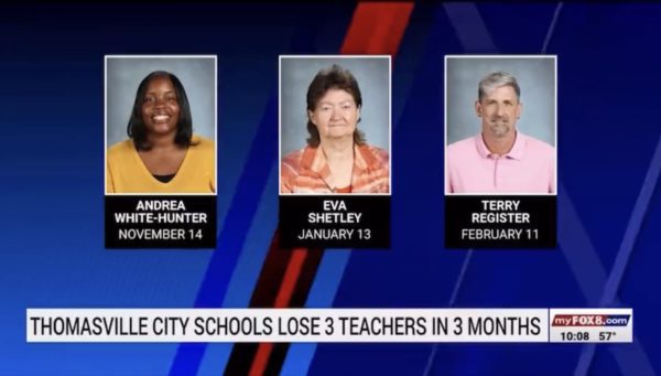 In the past three months, three teachers at Thomasville Primary School in North Carolina have died “suddenly and unexpectedly,” according to social media messages from friends and family as well as an obituary.