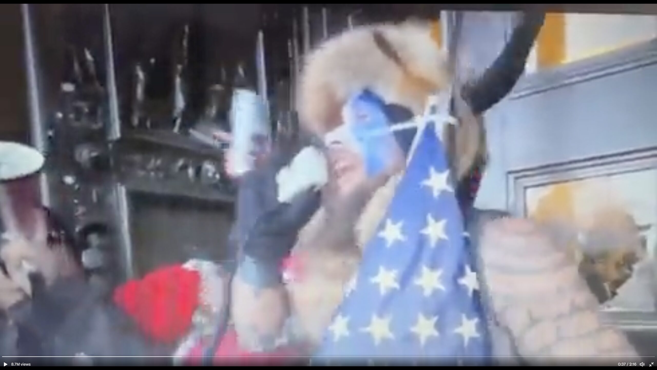 “I sang a song. That’s a part of shamanism. It’s about creating positive vibrations in a sacred chamber. I also stopped people from stealing and vandalizing that sacred space, the Senate. Okay? I actually stopped somebody from stealing muffins out of the break room. And I also said a prayer in that sacred chamber. Because it was my intention to bring divinity, and to bring God back into the Senate”, Chansley said.