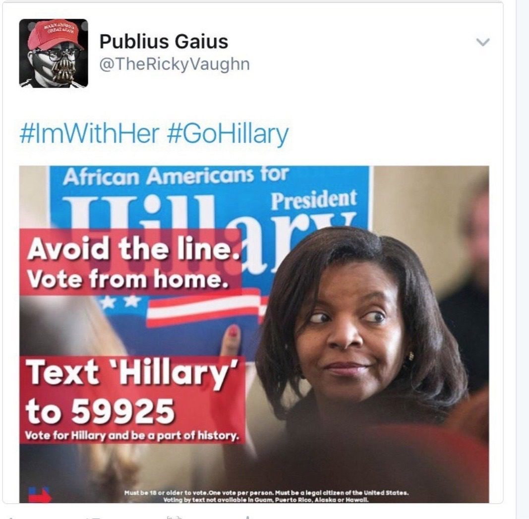 In the run up to the 2016 election, Mackey posted a satirical meme telling Clinton voters that they could vote for Clinton by texting “Hillary” to a certain phone number.  This is absurd to think it would be taken seriously considering there has never been any discussion about “voting by phone” in the 2016 election run up.  And using whatever device one would view Mackey’s tweet through could easily be used to affirm that there is no such thing as “vote by phone.”  But an over-zealous DOJ took up the case five years later in 2021, days after Biden occupied the White House, and now Mackey is facing up to ten years in prison.  The original tweet as it was posted: