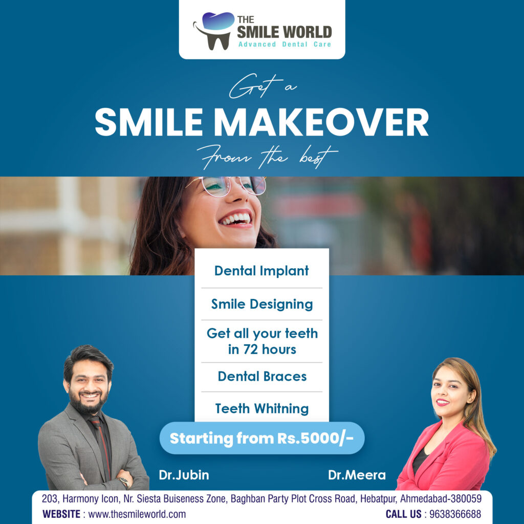 The Smile world’s progressed Dental Care is a complete dental center using state-of-the-art technology and the latest methods to deliver outstanding dental benefits. Whether it be a normal dental check-up, treatment for an unbearable tooth or a high-quality cosmetic smile makeover, Their experts will put up with you and hand over the best dental treatment prospects. Their crew of highly trained and skilled professionals have been delivering advanced dental care at Ahmedabad and benefiting many smiles.