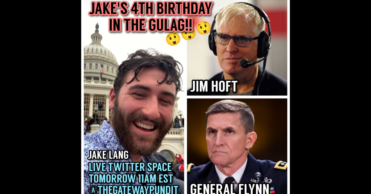 The post 4 BIRTHDAYS IN THE GULAG FOR J6ER JAKE LANG! Gen Flynn and Jim Hoft Live Twitter Space Sunday at 11 AM ET for Jake’s B-day appeared first on The Gateway Pundit.
