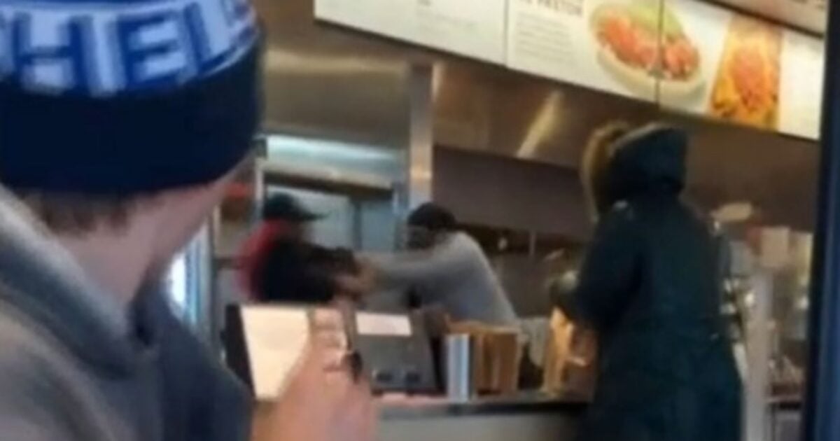 According to a bystander, the incident started when the man walked around the counter to finish preparing… pic.twitter.com/BXlYJ940IJ