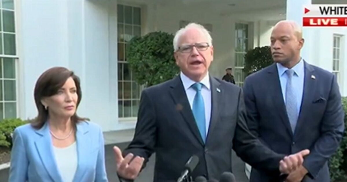 After the meeting only Govs. Walz, Hochul, and Moore spoke to reporters.