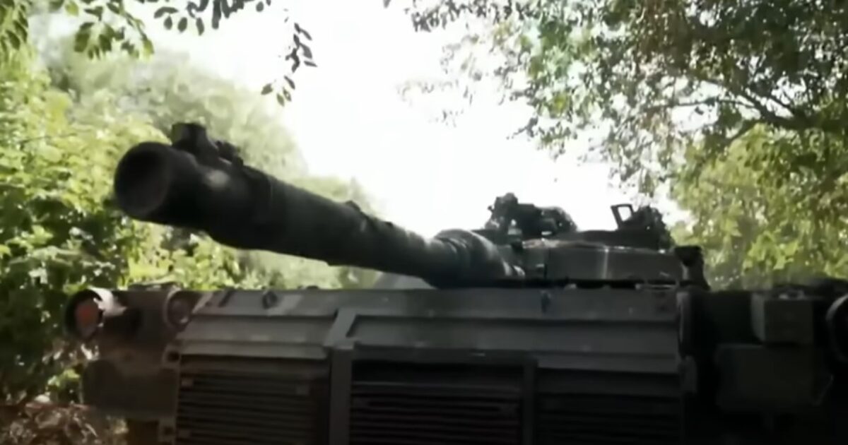 US Abrams Tank sent to Ukrraine by Biden regime. – video screengrab