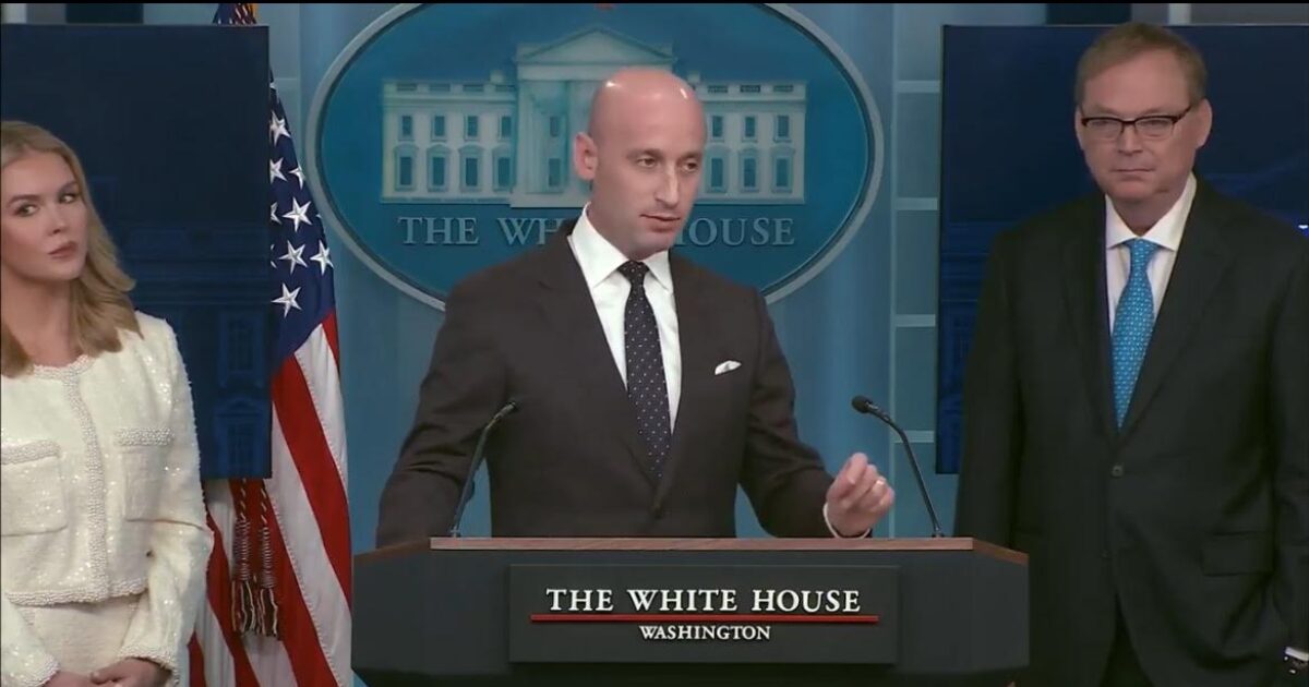 Stephen Miller continued, “America is safe and free. The entire world now understands that if you do not come here illegally — If you do, you will go to jail, you will go home, and you will not succeed. This is the biggest and most successful change in any area of law enforcement that this nation has ever seen and he did it in under one month.”