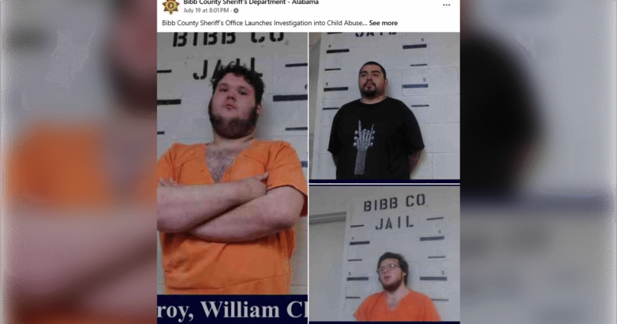 Three of the adult perpetrators arrested in the Bibb County Alabama child torture and trafficking ring – Bibb County Sheriff’s Facebook page