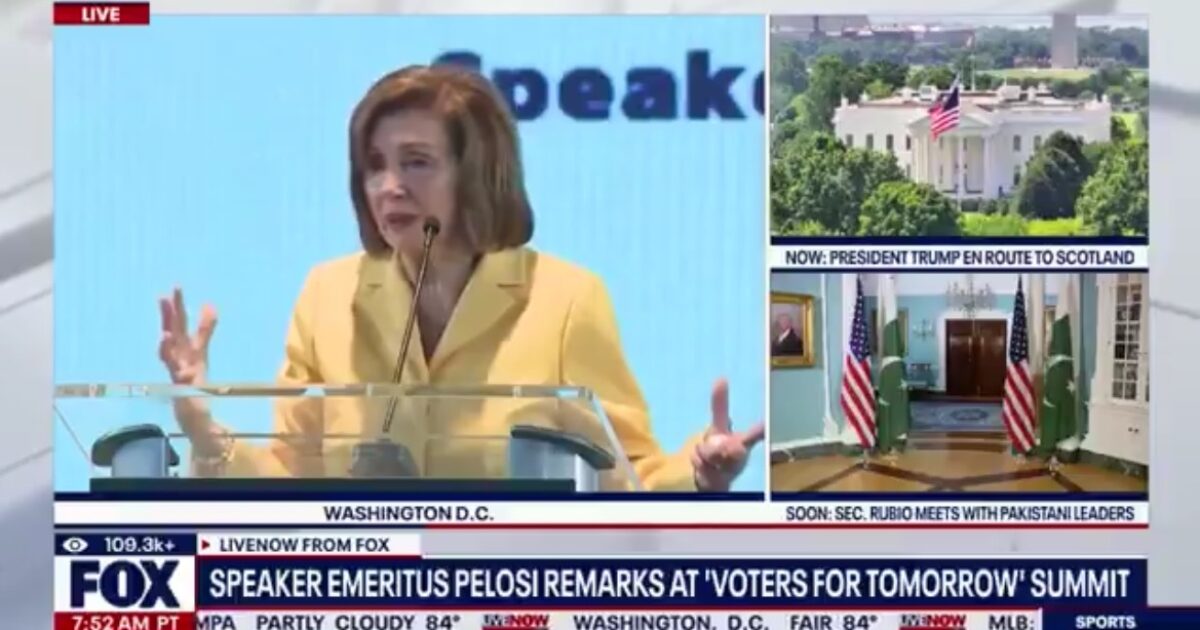 Former House Speaker Nancy Pelosi slurred her way through a speech at a “Voters of Tomorrow” summit in Washington DC on Friday.