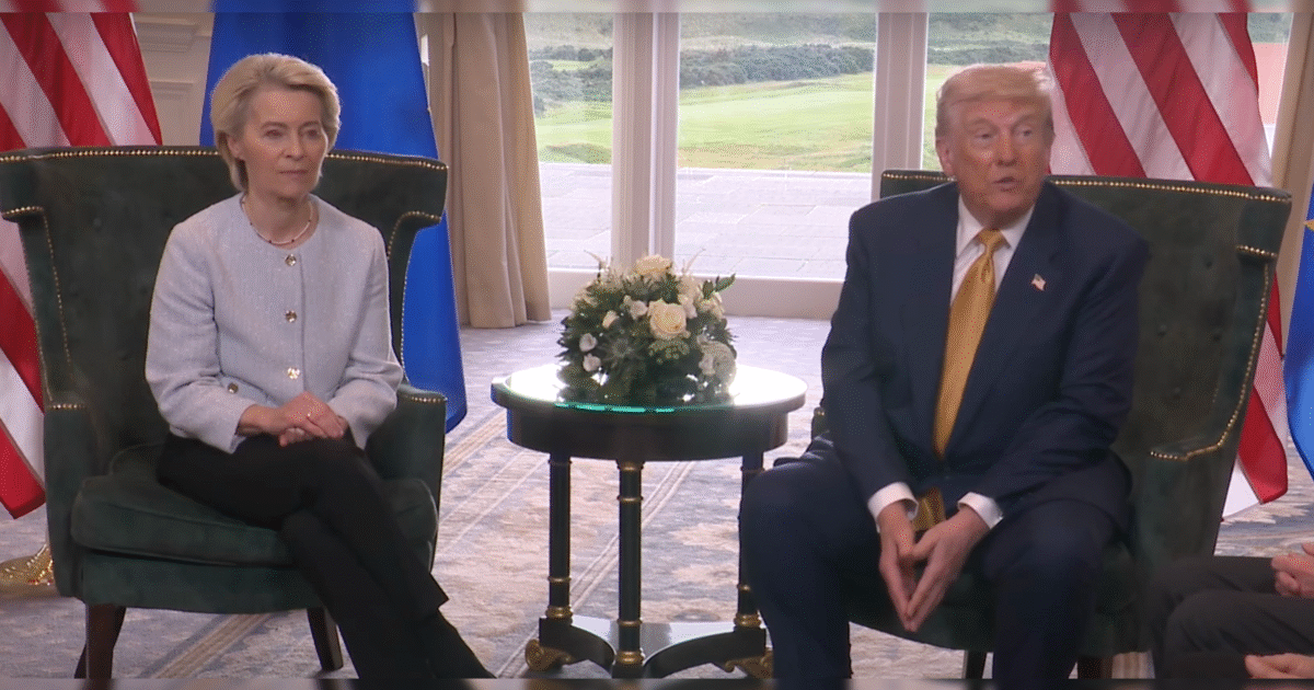 Speaking with the press, von der Leyen shared, “The starting point was an imbalance, a surplus on our side and a deficit on the U.S. side. And we wanted to rebalance trade relation.”