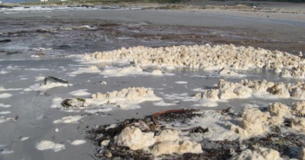 The scene was recorded on a seemingly deserted beach, where a thick, white layer covered the shoreline. Sky, known