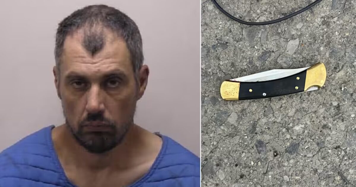 The weapon he allegedly used in the attack was a folding knife with a 3.5-inch cutting blade.