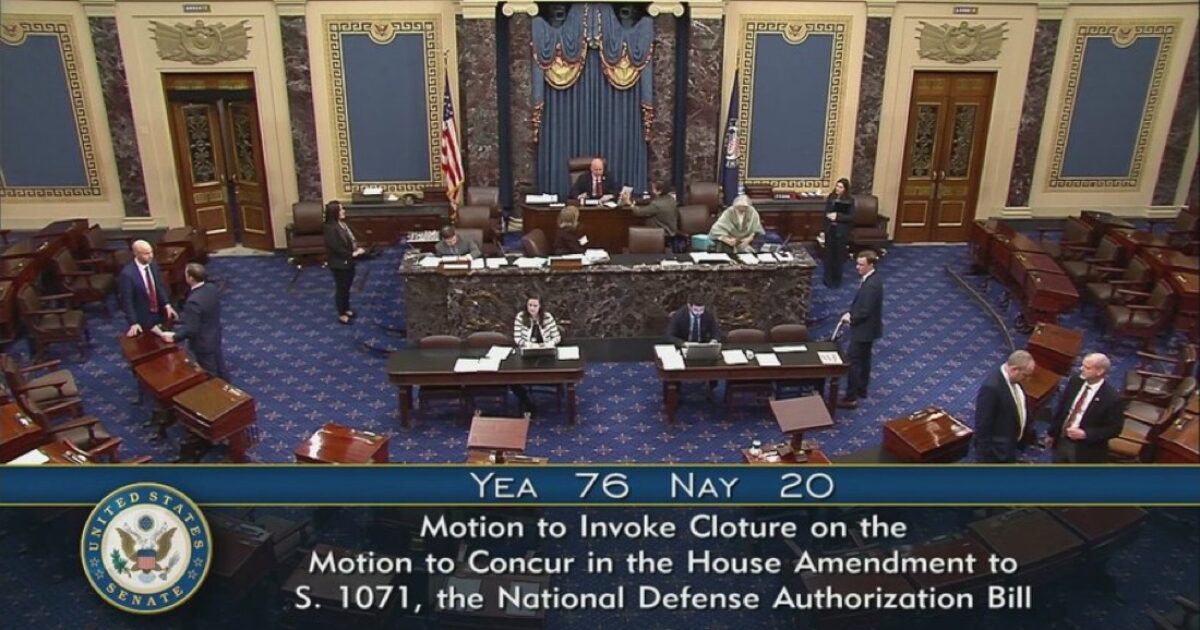 The US Senate on Monday voted to end the filibuster and advance the National Defense Authorization Act to a final vote.